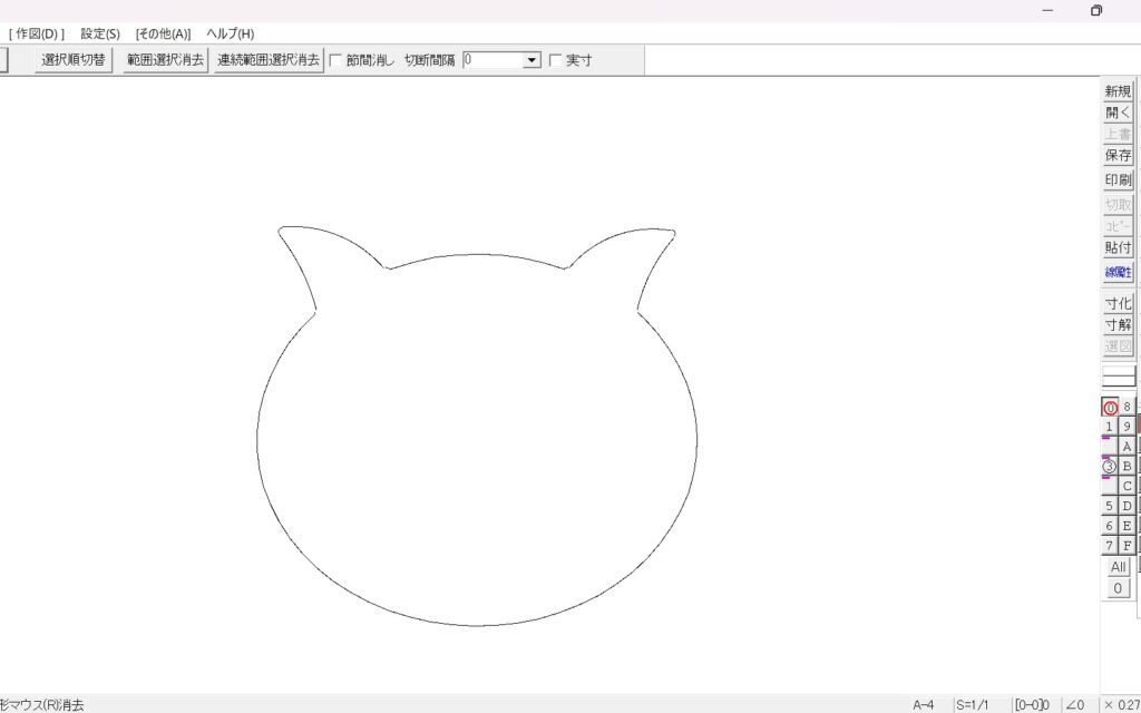 JWCADを開き円弧や楕円などを駆使し作図します。