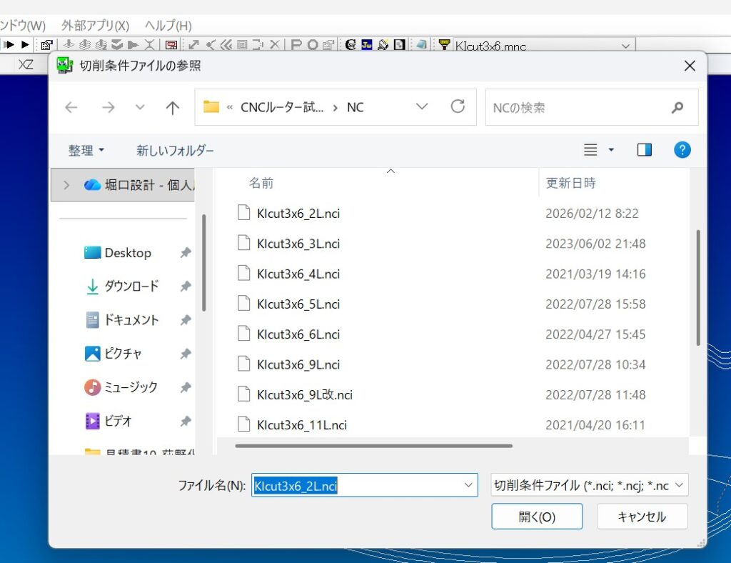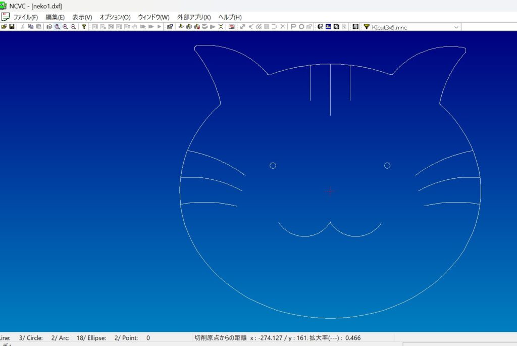 またKICUTの機械情報ファイルをあらかじめ読み込んでおきます(KIcut3x6.mnc)