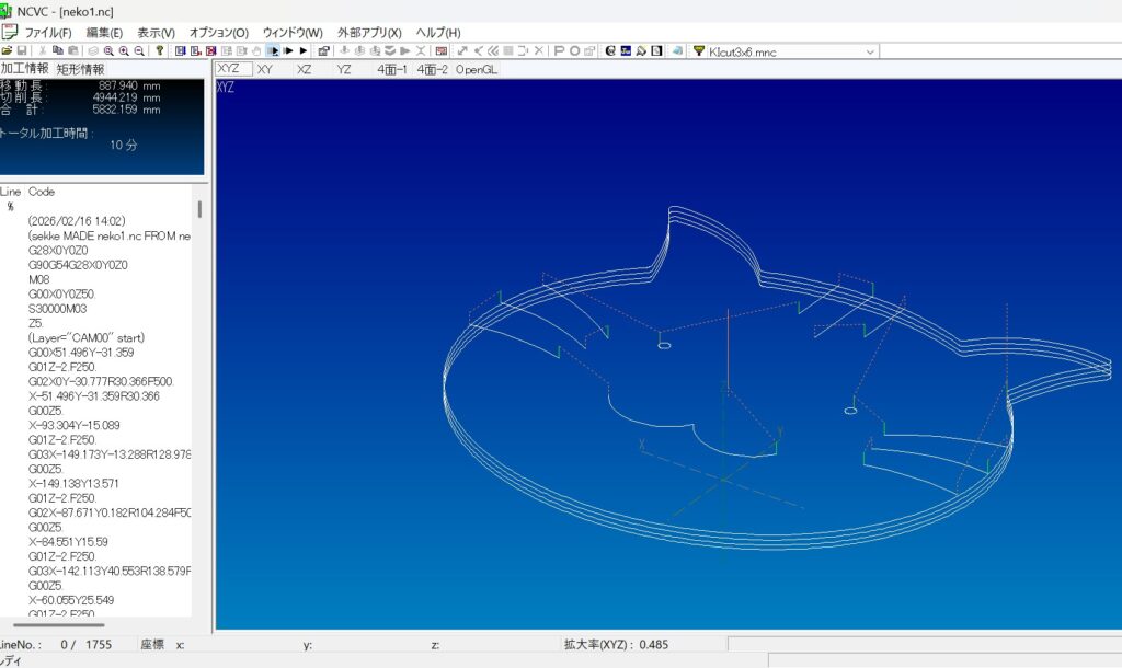 フリーのCAMソフトとして優れたNCVCというソフトウェアを使ってNCデータを作成します。