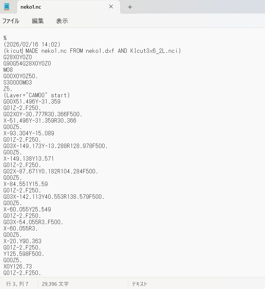 このNCデータを次回EdingCNC CNC4.03に読み込み実際に加工を行ってみます。